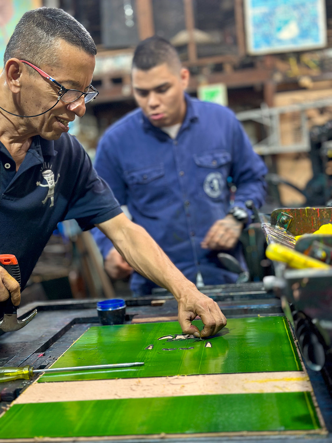 Handgefertigt in Lateinamerika, entstehen unsere Kunstwerke ausschließlich durch traditionelle Druckverfahren und Techniken, die jedem Druck seinen einzigartigen, unverwechselbaren Charakter verleihen. Viele Werke werden zudem in limitierter Auflage produziert und persönlich signiert.