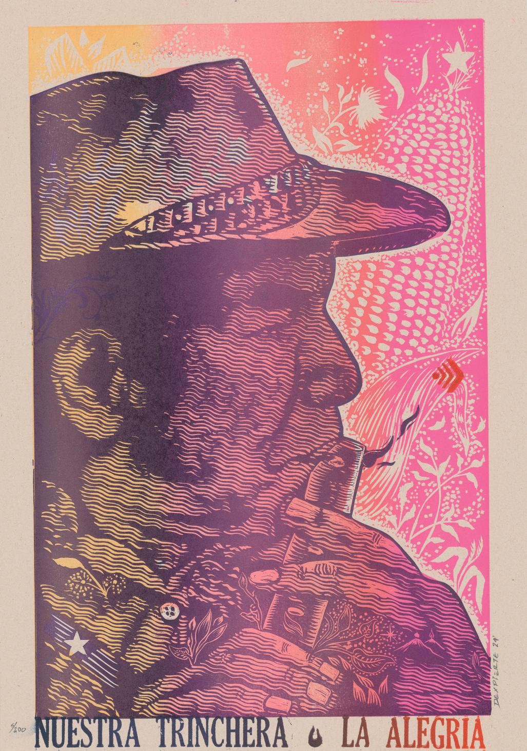 Titel: "Nuestra Trinchera la Alegría" • Künstler*in: Dexpierte Colectivo • Herkunftsland: Kolumbien • Edition: Limitiert auf 200 Stücke • Signiert von der Künstler*in • Größe: 35 x 50 cm • Papier: Earth Pack Sugar Cane +/- 120 g/qm • Hauptkollektion: Activist Art